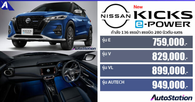 Nissan ประกาศเปิดตัว New Nissan Kicks e-Power 2022 อย่างเป็นทางการ มาพร้อมเทคโนโลยี e-Power เจเนอเรชั่น 2 ที่มอบความสนุกเร้าใจในการขับขี่เสมือนรถยนต์ไฟฟ้า 100% พร้อมเพิ่มรุ่นตกแต่งพิเศษกับชุดแต่ง AUTECH ในราคาเพียง 949,000 บาทเท่านั้น