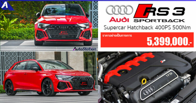 Audi RS3 Sportback 2022 ซูเปอร์คาร์ 5 ประตู รุ่นใหม่ล่าสุด ถูกเปิดตัวอย่างเป็นทางการครั้งแรกในไทย ขุมพลัง 5 สูบเทอร์โบชาร์จ 2.5 ลิตร ที่รีดแรงม้าลงพื้นได้มากถึง 400 แรงม้า เคาะราคาจำหน่ายที่ 5,399,000 บาท