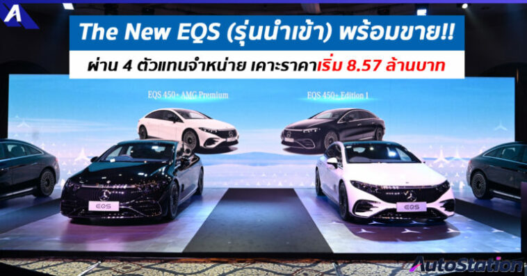 The New EQS ใหม่ รถยนต์ไฟฟ้าซีดาน ระดับลักชัวรี จากค่ายตราดาวประเทศเยอรมนี พร้อมวางจำหน่ายแล้วในไทยผ่านผู้แทนจำหน่ายอย่างเป็นทางการ 4 แห่งในประเทศไทย ด้วยสองรุ่นย่อย EQS 450+ AMG Premium และ EQS 450+ Edition 1 กับราคาเริ่ม 8.57 ล้านบาท